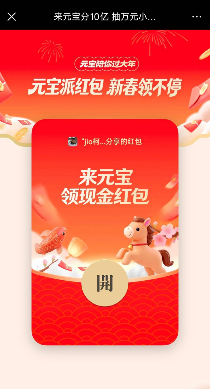 春节时间,腾讯元宝靠“分10亿现款”当作整夜冲顶苹果App Store免费榜榜首。