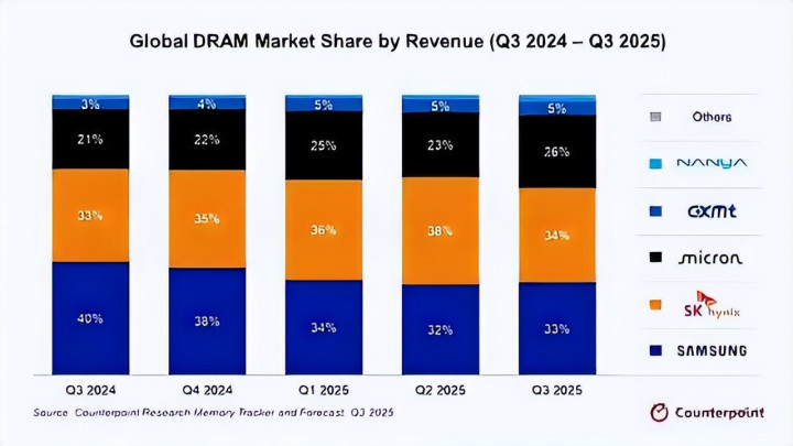 按照之前的数据清楚,在DRAM界限,长鑫的份额惟一5%傍边,而三大厂商拿下了90%以上,最少的好意思光都有26%,三星有33%,SK海力士有34%。