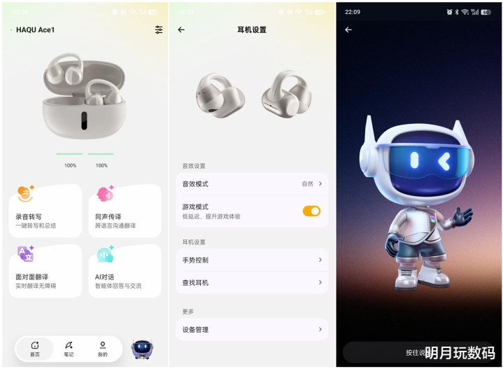 除此除外,哈趣Ace1的手机APP功能也十分繁多,除了音效模式、耳机手势和查找耳机等一些旧例的耳机成立外,还加入了灌音转写、同声传译、濒临面翻译和AI 对话等智能功能。这些功能可以通俗咱们在不同场景下打造专属使用体验外,还可以在泛泛生计中进行AI交互,丰富咱们的泛泛或是商务场面下的翻译需求。