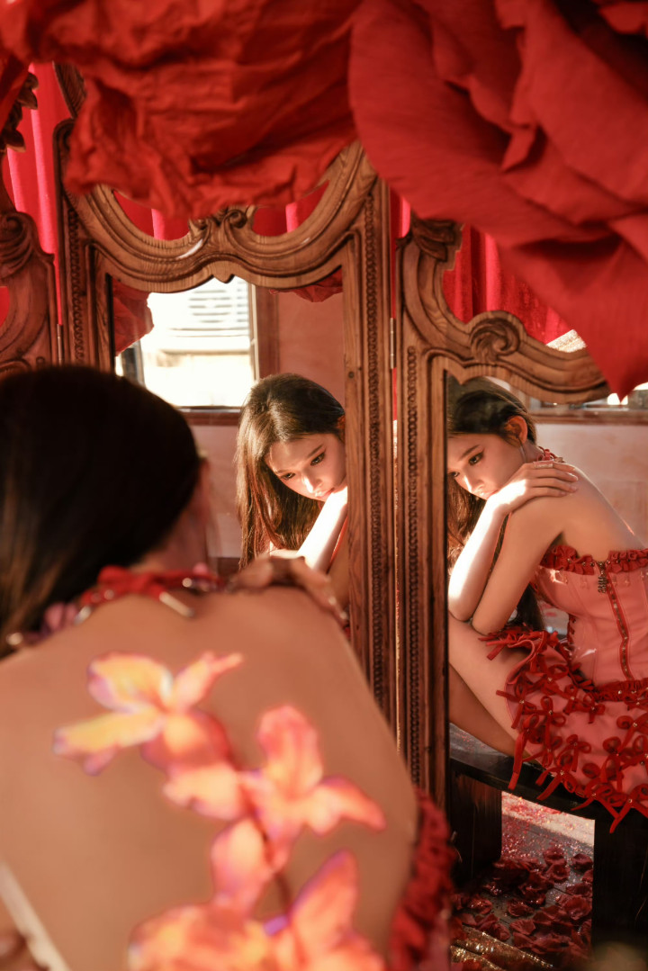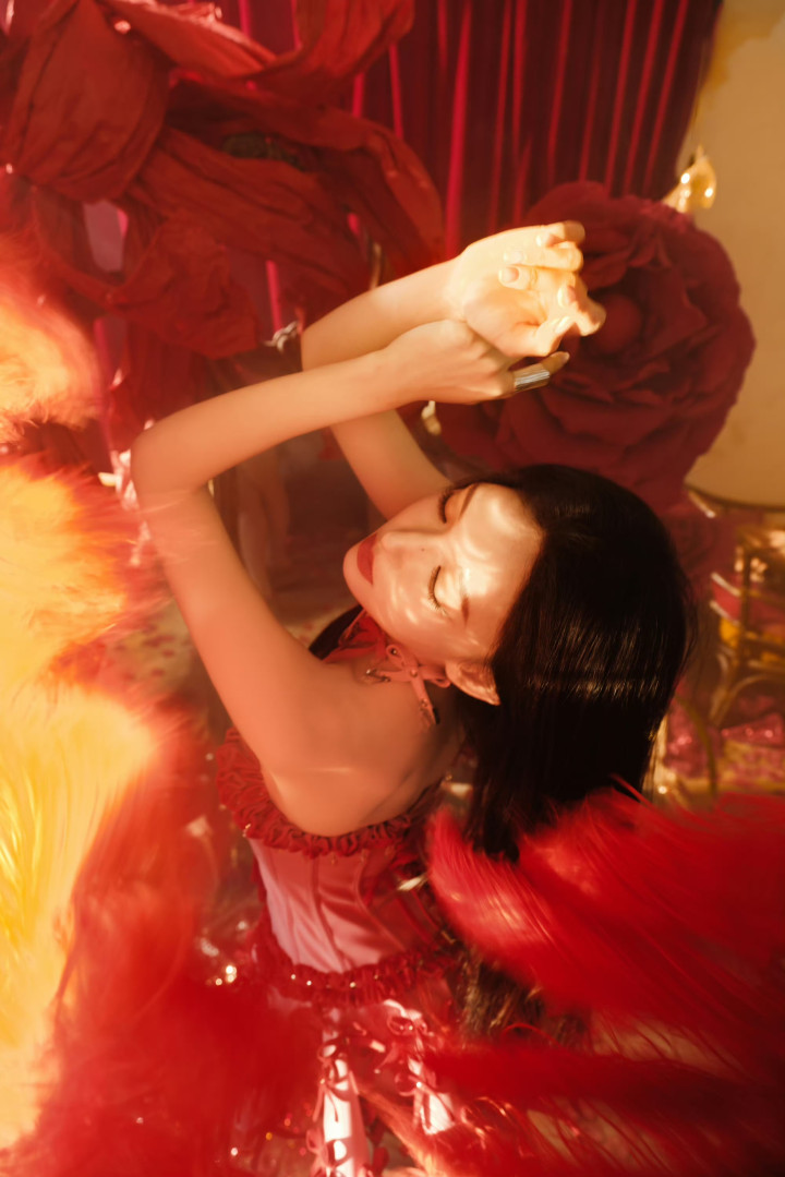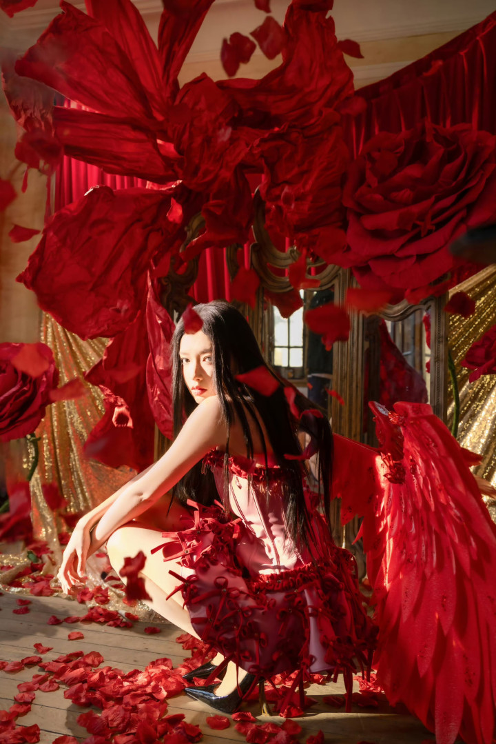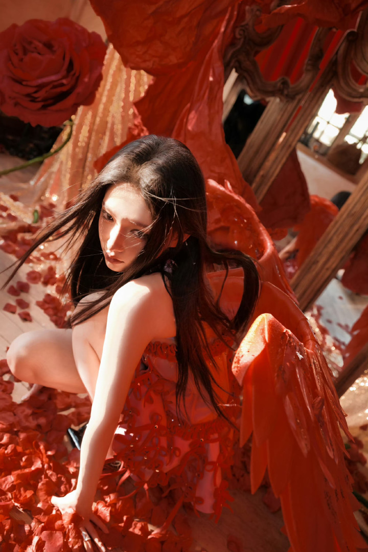OD体育app官网 程潇红色蕾丝抹胸短裙