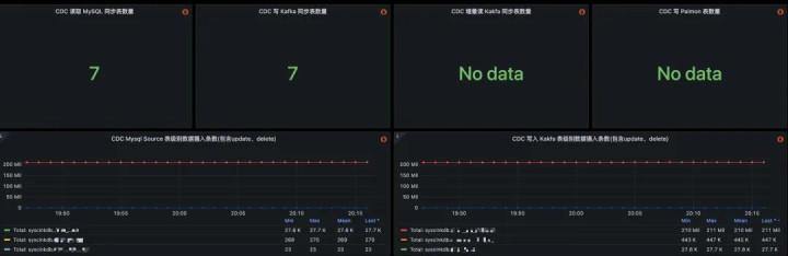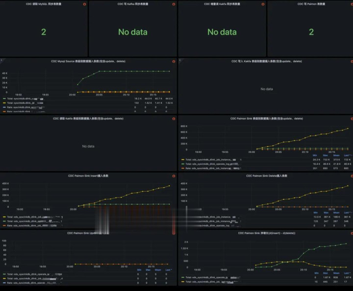 咱们建立了袒护全链路的表级别监控体系。通过内置的批流切换事件见知, 如图 8 所示,用户不错明晰地了解功课刻下景况(全量/增量/回补)。从 MySQL 到 Kafka,再到 Paimon,数据流在各圭表的进出口均加多了表级别的辩论埋点,用户可基于这些辩论竖立数据断流、延迟等告警,完了了精粹化的可不雅测性(图 9-图 10)。