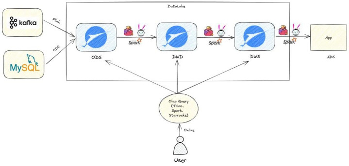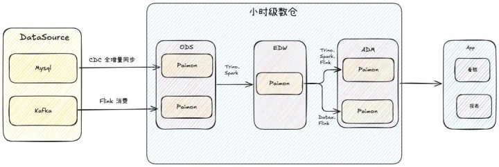 咱们禁受 Flink CDC+Paimon+Trino/Spark 四肢小时级数仓的工夫底座,通过流式入湖和小时级休养,形成了从多源异构数据汇集、分钟级入湖、分层存储治理到最终应用管事输出的全链路工夫架构。