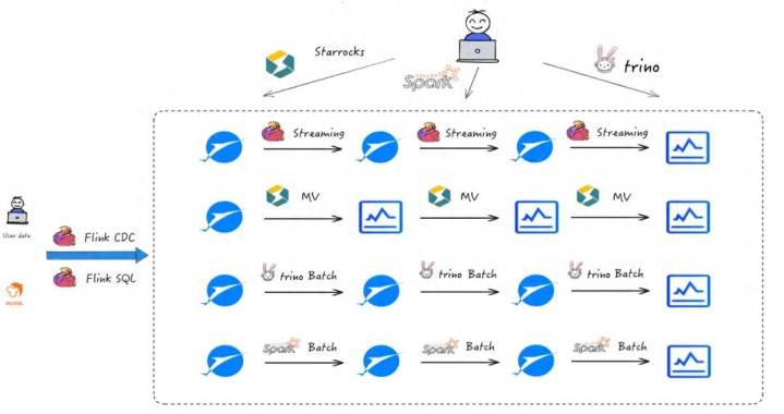 Lambda 架构:因实时与离线链路物理割裂,在面对会通分析需求时,时常需要双团队协同开发,波及多半数据口径对都责任,变成崇高的东说念主力协调本钱,蹂躏了业务敏捷反应。