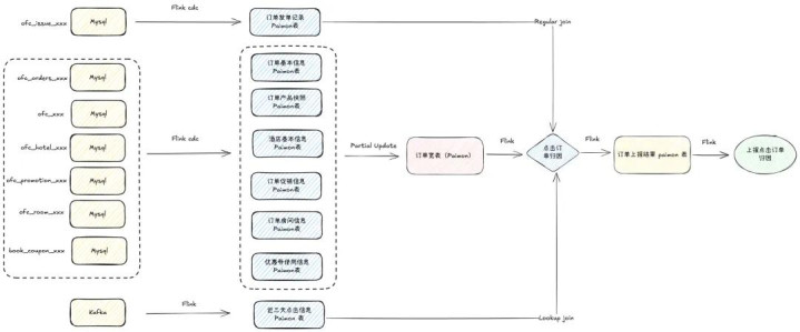 上报所需字段和逻辑在业务系统中波及 7 张 MySQL 表,实时多流 Join 完了难度和本钱较大、贯通性挑战较大。
