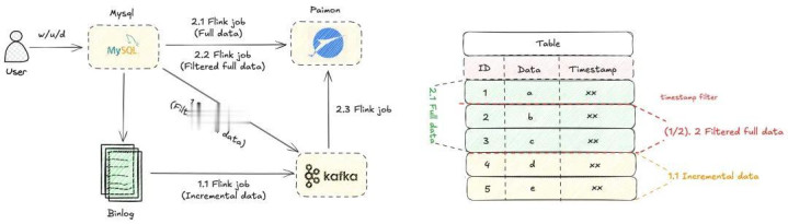 解法:咱们开发了带偶然代戳过滤的全增量一体的补数有辩论, 如图 5 所示。用户不错通过竖立,不错进行一键补数。其中枢是带偶然代戳过滤的全增量一体同步。但是这个有辩论存在一个局限:即是会导致 MySQL 一些被删除的数据无法同步到 Paimon 中删除。即在很是期间,源端数据库已删除的数据,其删除操作未能同步到 Paimon,导致这些数据在 Paimon 中仍然存在。