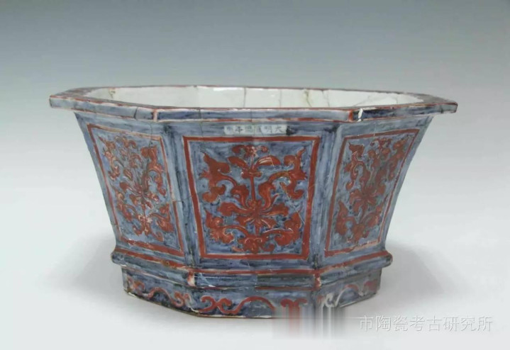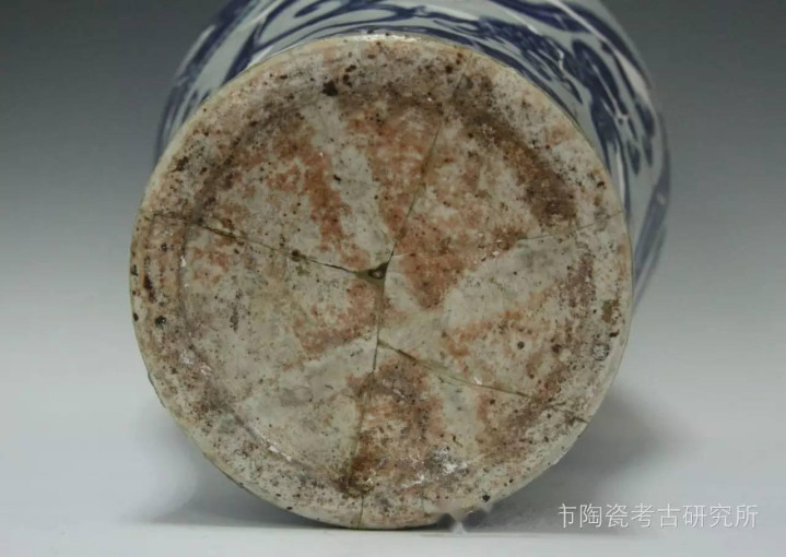 从以上所列御窑名胜出土的遗物可知,底部有十字交叉踪迹的器物,其器形有罐、梅瓶、大盘、花盆、套钵等尺寸较大的器物,讳饰种类有青花、黄地青花、青花填红、白釉等。