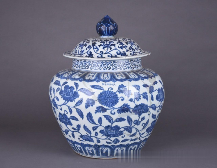 瓷器断然真知堂:宣德青花铺首龙纹大罐,底部除常见的火石红除外,还有白色十字交叉踪迹,较为特地。这种交叉踪迹,主要见于明初御窑瓷器中。