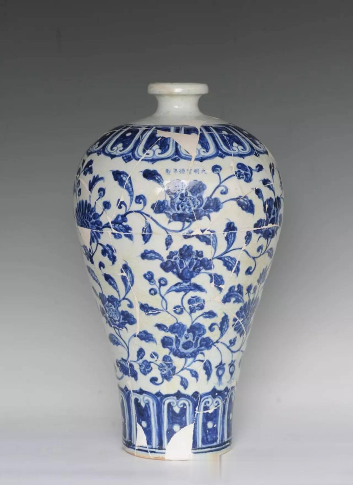 经清洗整理,设立出宣德本事的青花铺首龙纹梅瓶、青花铺首龙纹大罐、白釉大罐等器物,下文对其中的青花铺首龙纹梅瓶和罐进行简要先容。