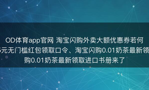 OD体育app官网 淘宝闪购外卖大额优惠券若何领? 淘宝闪购25元无门槛红包领取口令、淘宝闪购0.01奶茶最新领取进口书册来了
