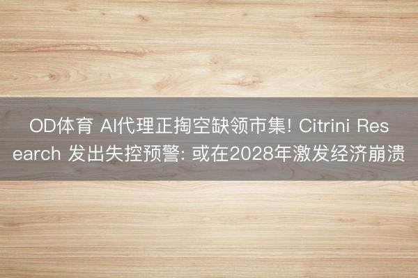 OD体育 AI代理正掏空缺领市集! Citrini Research 发出失控预警: 或在2028年激发经济崩溃