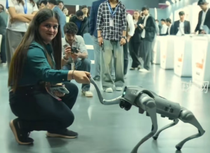 比如,一位正在袭取采访的印度闻明大学进修,她的团队带来了一款堪称达到“海外先进水平”的机器狗。靠近镜头,她侃侃而谈,称这些机器狗是学校自研的,学生们运用工程学、软件和 AI 本领为“数字印度”开采作念出了凸起孝顺。
