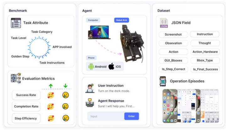为了让它真实靠谱,该团队极端盘算了 155 个日常任务让机器东谈主熟悉,从最节略的翻开成就,到复杂的在小红书搜索攻略、截图、发给微信好友,难度步步升级。测试扫尾诚然不算完好,节略任务的见效用还行(大于 90%),跳动多个 APP 的任务还有点昆季无措。但是,场所还是十分明晰,那等于改日的家用机器东谈主不错通过不雅察和触摸来接纳你的手机杂活。
