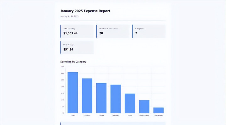 description: Generate financial reports with charts using Chart.js. Use when users ask to visualize spending, show trends, create expense charts, analyze spending patterns, compare categories, track budget progress, or generate financial reports. Handles chart type selection (bar/line/pie), data formatting (currency, dates, aggregation), Chart.js configuration, and insight generation. Works with expense data from tools like cameron_get_expenses or similar financial data sources.