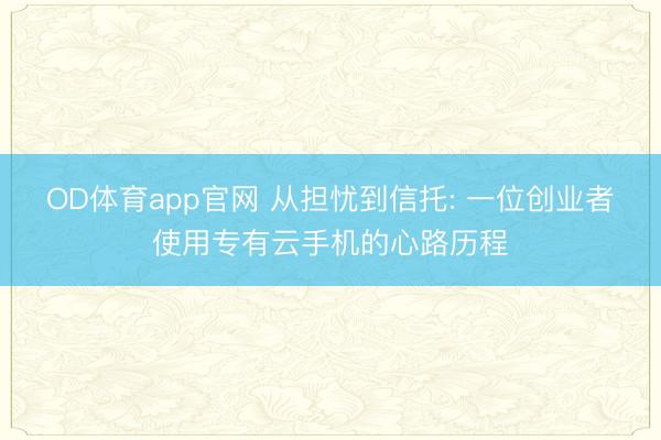 OD体育app官网 从担忧到信托: 一位创业者使用专有云手机的心路历程