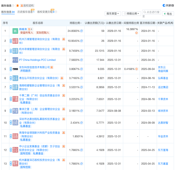 此外,顺为成本所有这个词捏有千寻智能4.4048%股份;京东捏股3.8067%;华为旗下哈勃投资捏股1.1777%。最新入股的云锋基金、360基金捏股情况,暂不解确。