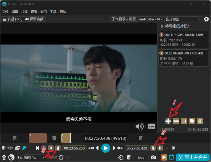 在LosslessCut里,你选好早先尽头,导出等于制品。