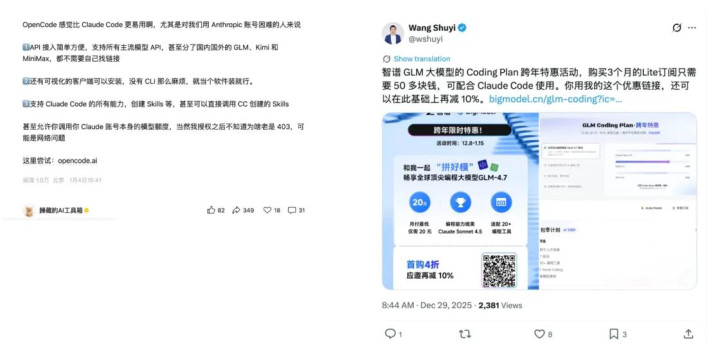 然后当今也照旧有许多教程教各人何如去用这类家具,包括说像 OpenCode 也有东说念主推选,若是说 Claude Code 太贵的话,也不错去用国内的智谱的 GLM,这个教程亦然有许多的。