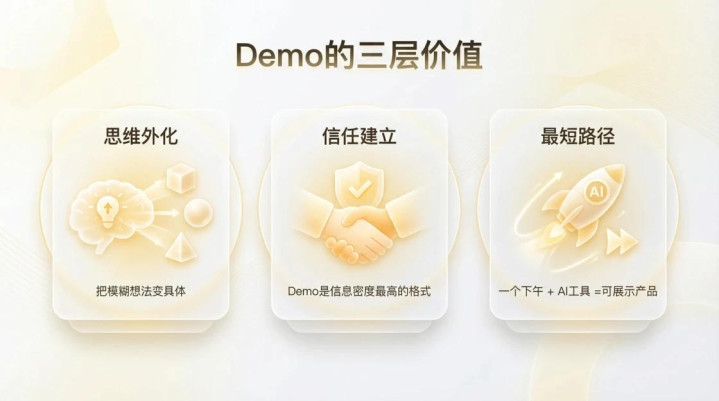 为什么?因为 demo 是信息密度最高的阵势:敷陈会让东说念主睡着、Slides 会让东说念主分神、Demo 让东说念主看到我方眼睛的真实信息…