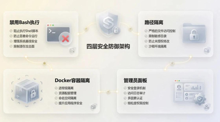 AI 给了我几个建议:旅途阻隔、Docker 容器、权限白名单。这时候我才意志到,架构筹办的时候就要把安全洽商进去,而不是比及代码写完毕再补。