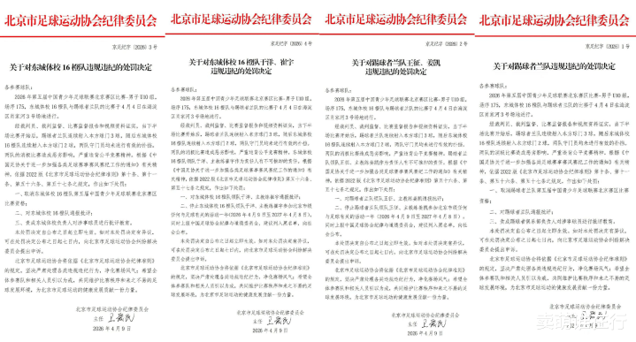 而U10的比赛打成3比3,6个进球全是乌龙,靠近这样的乱象,北京市足协关于涉事双方踢球者兰队和东城体校橙队开出罚单,两支球队比赛资历被取消,双方领队和主讲明都被禁赛一年。