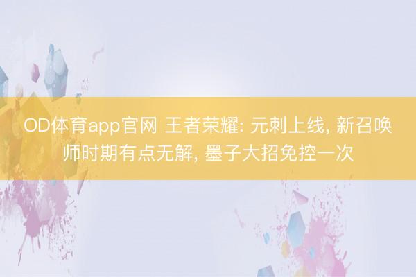 OD体育app官网 王者荣耀: 元刺上线, 新召唤师时期有点无解, 墨子大招免控一次
