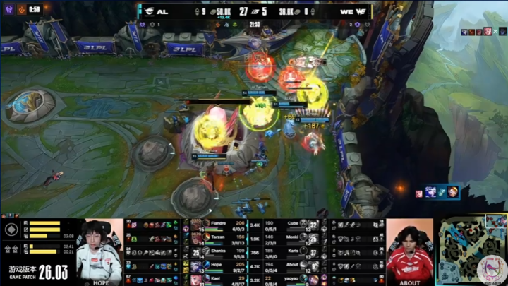 今天LPL开启了第一赛段的季后赛,双败赛制下,首轮分组赛中JDG打败TES,AL打败WE。JDG和AL晋级胜者组下一轮对局,而TES和WE则将在败者组相遇。在吃力Jackeylove的情况下,TES和JDG亦然打满了Bo5,“强队”这个词嗅觉离他们齐很远处。AL则是3-0横扫了WE,而况第三局以致打出了22分钟的速通!威望没变的AL,延续着上个赛季可以的竞争力。仅仅算作年后的首个比赛日,一上来即是互啄和虐菜,也照实让比赛变得很无趣。