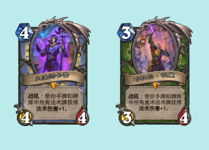 法师的第二张橙卡是东说念主方式的卡雷苟斯:大法师卡雷,4费4/4,战吼:使你手牌和牌库中通盘法术牌取得法术伤害+1。这不是咱们猎东说念主的哈杜伦吗(甚而哈杜伦领先亦然444),况兼如故哈杜伦pro版,可以给通盘法术牌加法强,不外这种卡牌准时拍和后续拍下的强度差距如故很大的,而法师不像猎东说念主有许多定向检索侍从的技艺,法师甚而王人不成发现牌库,能不成准时抽到十足看发牌员,是以嗅觉也莫得非凡强,只可作为念添头,不太能作为中枢。