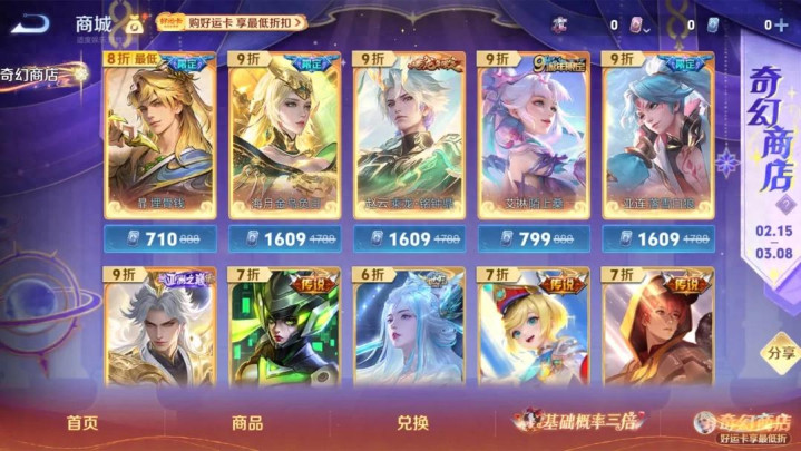 昆玉们本年春节王者新出了个魔幻商店行径,在魔幻商店内部,悉数的皮肤齐会打折,若是你不买好运卡的话,松手皮肤是立时八折草率是九折,直售皮肤立时五折草率是七折,当你买齐备运卡以后,悉数皮肤沿途降到最低扣头,松手皮肤沿途会降到八折,直售皮肤沿途降到五折