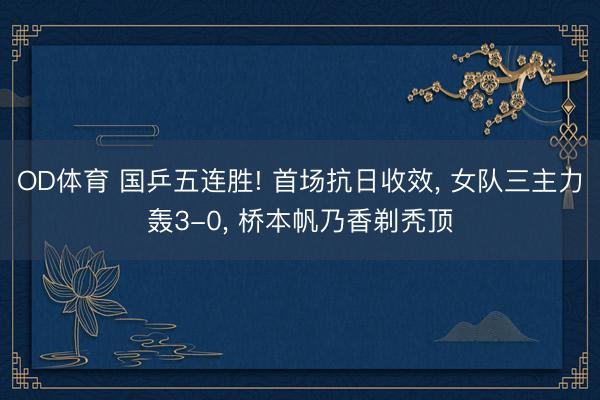 OD体育 国乒五连胜! 首场抗日收效, 女队三主力轰3-0, 桥本帆乃香剃秃顶
