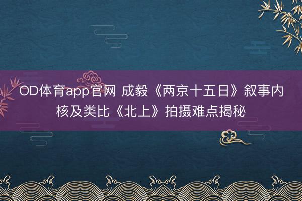 OD体育app官网 成毅《两京十五日》叙事内核及类比《北上》拍摄难点揭秘