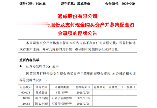 为保证公谈信息败露,关心投资者利益,幸免对公司股价变成紧要影响,公司股票、可转债债券以及可转债转股自2026年2月25日起运转停牌,展望停牌时辰不越过10个交游日。