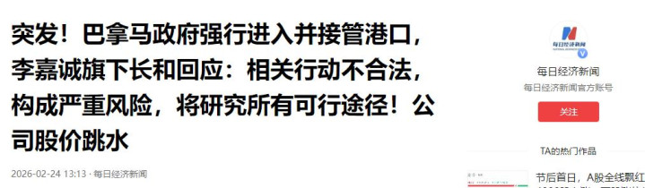 逐日经济新闻:突发!巴拿马政府强行进入并收受口岸,李嘉诚旗下长和答复:相干活动不对法,组成严重风险,将研讨整个可行门路!公司股价跳水