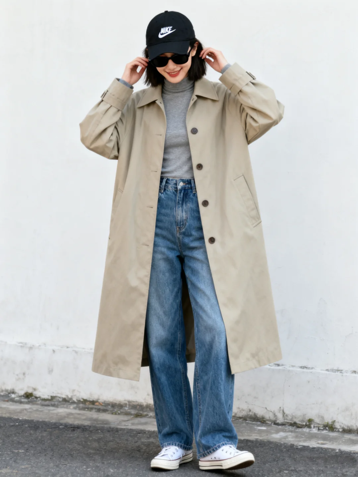卡其色风衣可以给与掀开穿好像系腰带,两种穿法松驰切换,比如卡其色风衣内搭白色打底,下半身搭配高腰牛仔裤,风衣掀开穿,优雅高等走路带风,系上腰带,打造完好形体比例,整个这个词东谈主的气质也变得愈加利落高挑。
