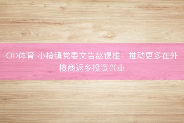 OD体育 小榄镇党委文告赵锡雄:推动更多在外榄商返乡投资兴业