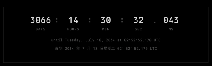 他瞻望时间奇点将在2034年7月18日星期二凌晨2时52分52.170秒到来。