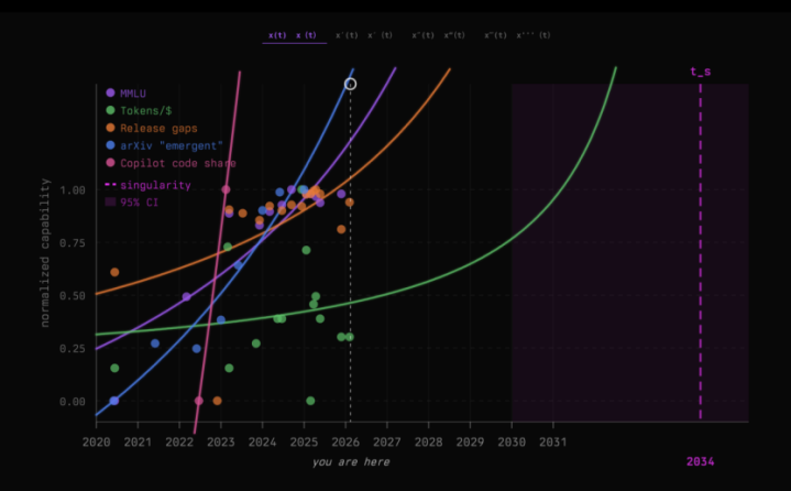 公式里的 x(t) 代表AI的能力或高出速率,t是当下的时辰。最毛病的变量是ts,它便是奇点日历。