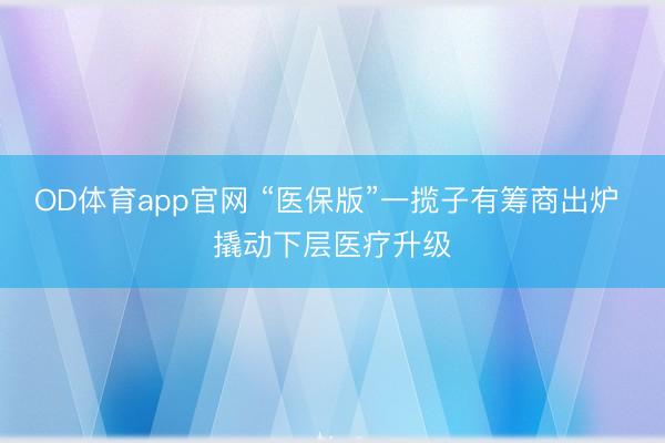 OD体育app官网 “医保版”一揽子有筹商出炉 撬动下层医疗升级